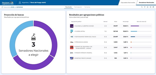 La alianza electoral “La Libertad Avanza” en Tierra del Fuego se impuso en las elecciones parlamentarias nacionales. En segundo lugar quedó el espacio político “Fuerza Patria” y tercero quedó el frente “Defendamos Tierra del Fuego”.